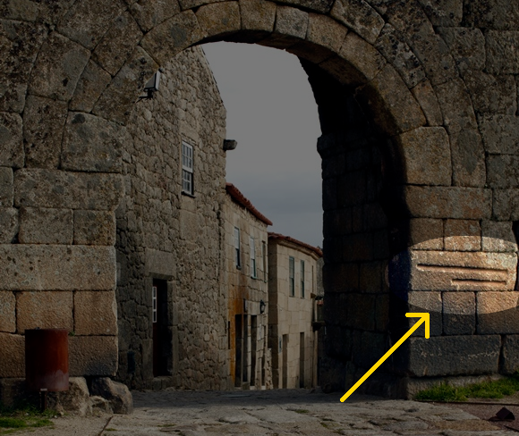 Portal no Castelo de Sortelha, em Portugual. Em destaque, as medidas padrões vigentes no antigo reinado entalhados no portal – Foto: Câmara Municipal de Sabugal