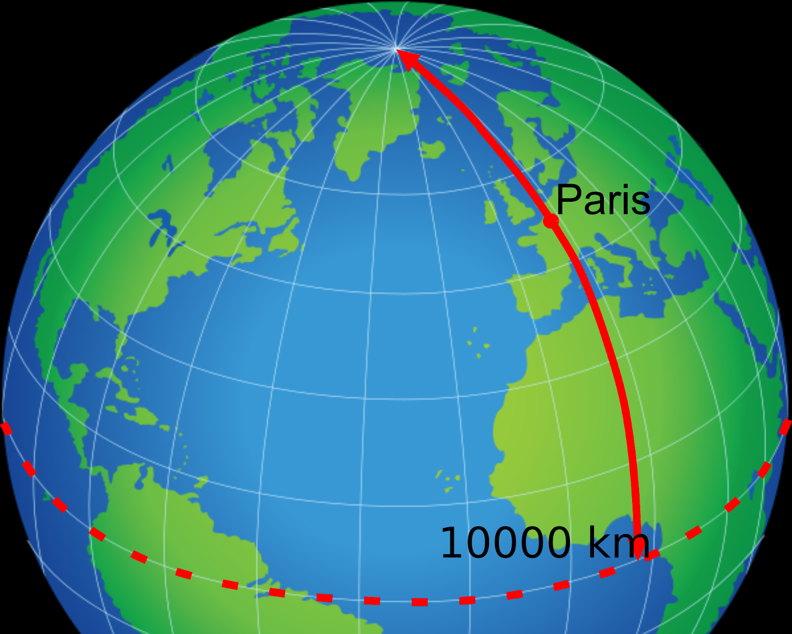 Definição original do metro: a décima milionésima parte da distância entre a Linha do Equador e o Polo Norte medida a partir do meridiano que passa por Paris – Fonte: U.S. Government / wikimedia.org