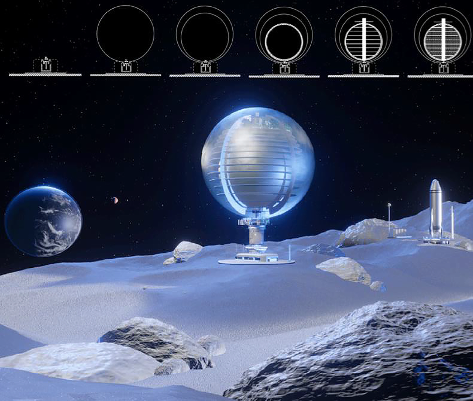 de soprar grandes estruturas de vidro na superfície lunar. A ideia de construir