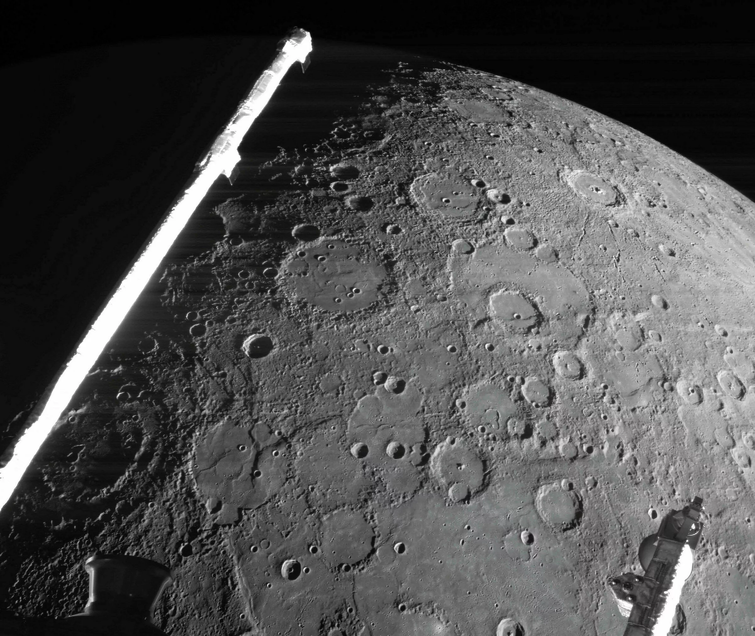 A segunda passagem da sonda BepiColombo por Mercúrio: A sonda MESSENGER da NASA capturou as imagens usadas para criar este mosaico de Mercúrio em 2008. Imagem: ESA/BepiColombo/MTM